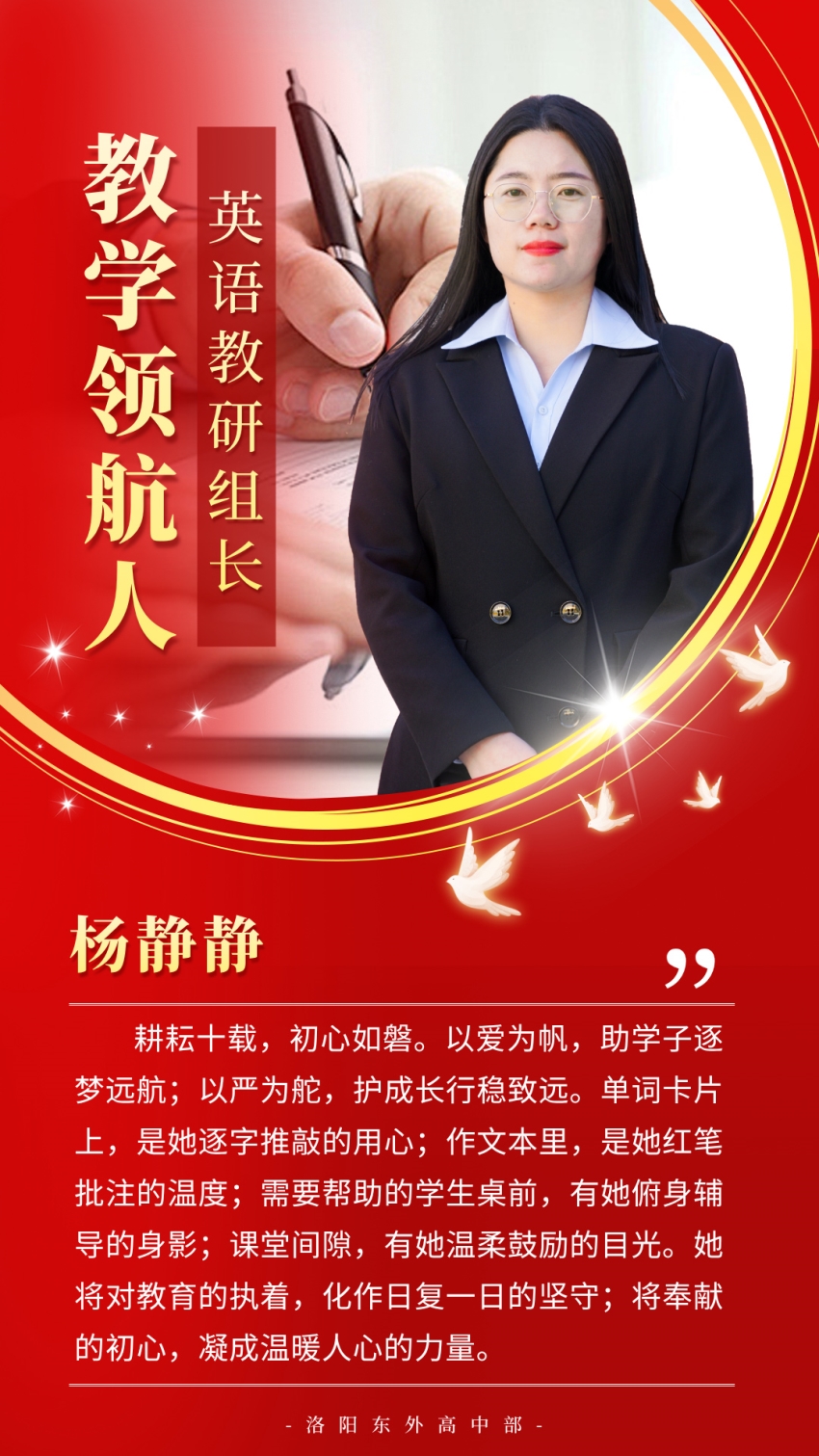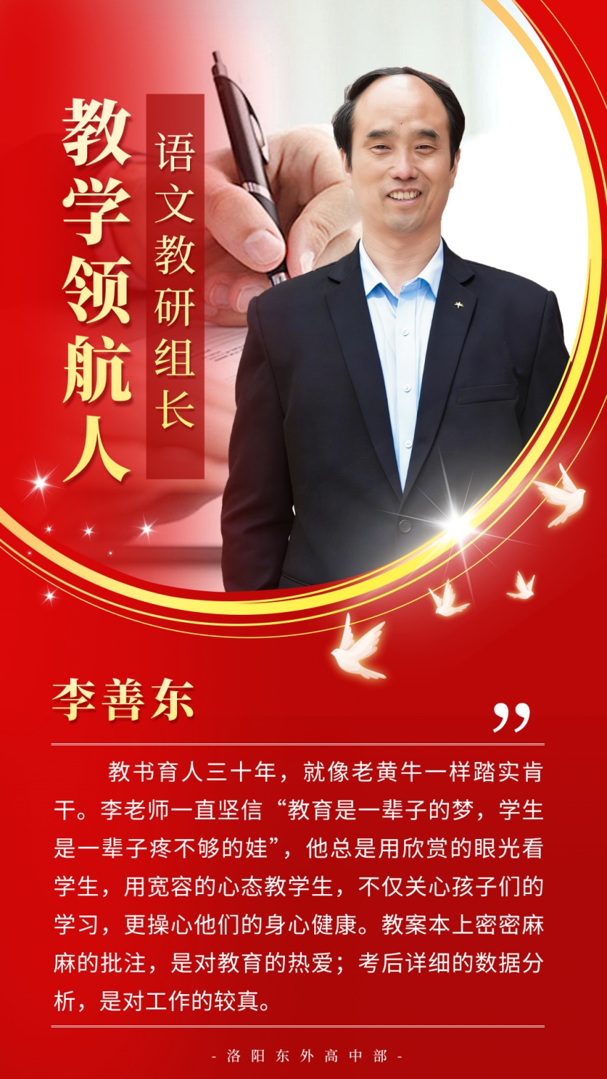 前言:栉风沐雨,砥砺深耕。东外高中始终锚定“狠抓四风,打造洛阳最严高中”的办学理念,恪守“落实常规,注重细节,狠抓过程,全面有效”的工作标准,以“东外高中精神”为引领,在团结奋进中攻坚克难,在务实创新里屡创佳绩,书写着教育事业的蓬勃篇章。教育是一场向美而行的遇见,引领是一场温暖智慧的修行。在学部高质量发展的征程上,有这样一支领航队伍——他们以思想为墨、行动为笔,在教育长卷上挥毫泼墨;他们是穿透迷雾的光,指引成长方向;是稳守初心的锚,托举青春远航。今天,让我们一同走近东外高中管理团队,聆听育人初心,见证实干担当。
